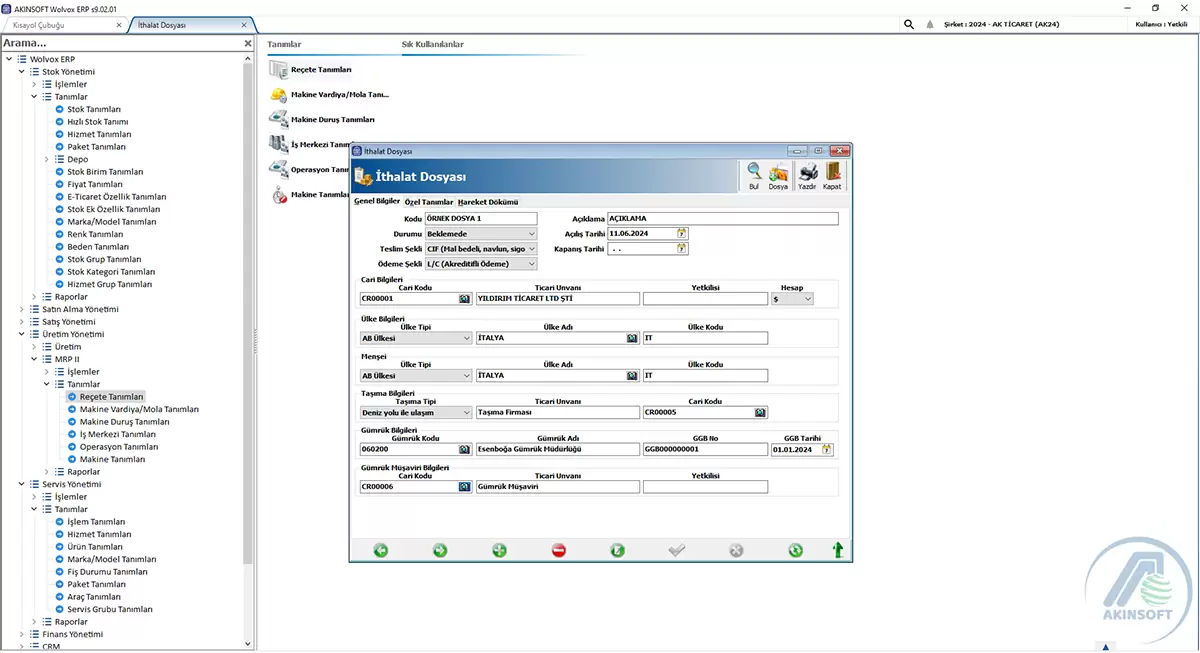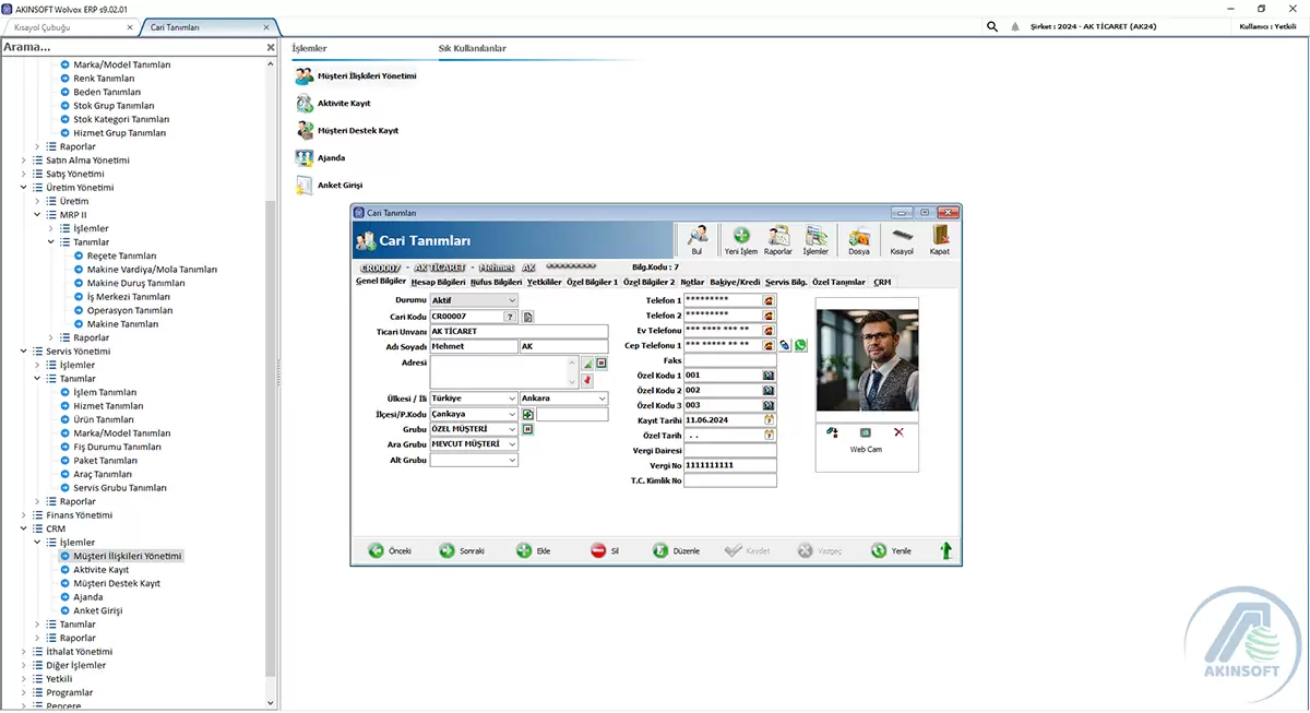 Çok kullanıcı desteği ile Cari, Cari2, Kasa, Stok, Stok2, Fatura, Çek-Senet, İrsaliye, Teklif, Sipariş, Döviz Takip, Döviz Bürosu Depo, Lokasyon, Banka, Kartoteks (Barkod basımı), Pazarlama, Seri No-Garanti Takip, Taksit Takip, Seri Senet Basımı, Servis, Üretim, Bonus Sistemi, MRPII,CRM, Zincir Pazarlama,İthalat modüllerini desteklemektedir. |